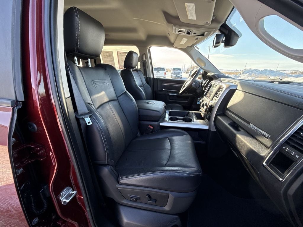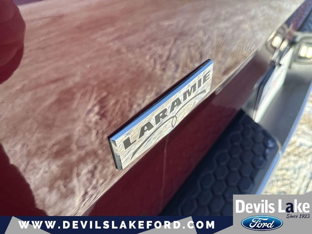 Cold Weather Group: Engine Block Heater; Winter Front Grille Cover. Quick Order Package 2FH Laramie. Protection Group: Transfer Case Skid Plate Shield. Leather Trimmed Bucket Seats. Center Stop Lamp with Cargo View Camera. Power Folding Chrome Trailer Tow Mirrors. Delmonico Red Pearlcoat. Delmonico Red Pearlcoat. Transfer Case Skid Plate Shield. **Equipment listed is based on original vehicle build and subject to change. Please confirm the accuracy of the included equipment by calling the dealer prior to purchase.**