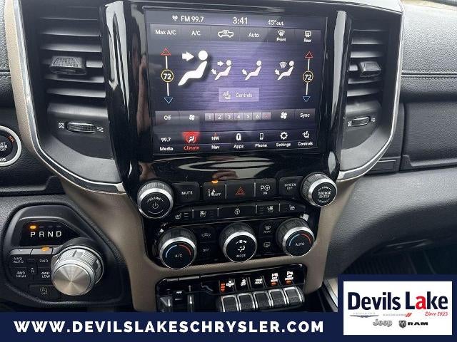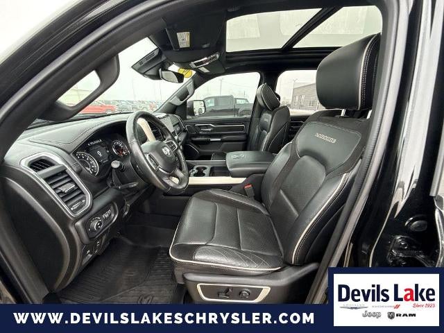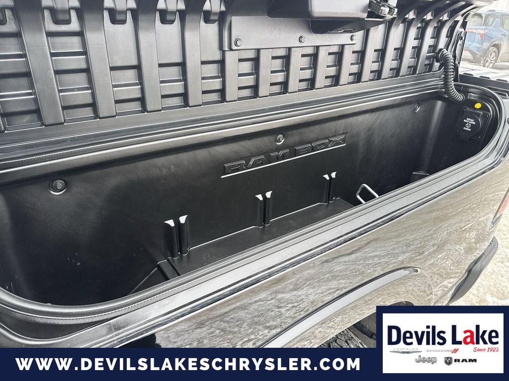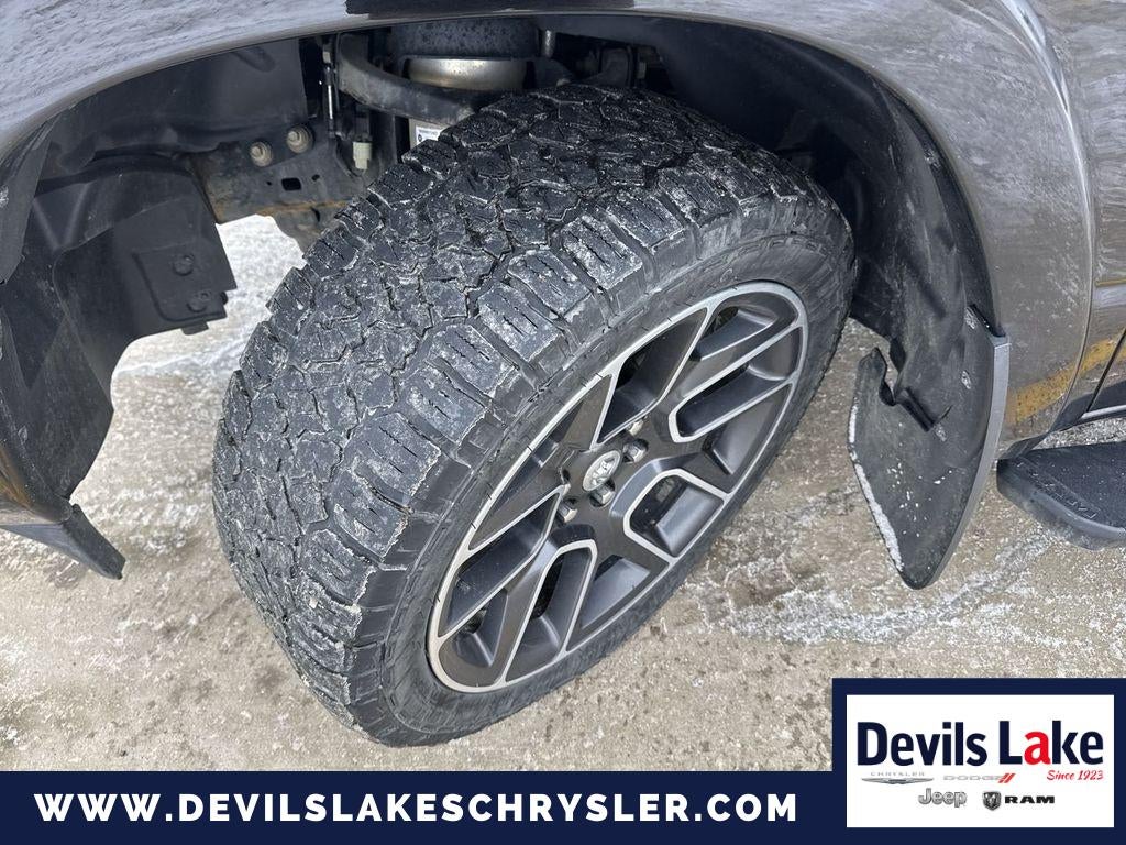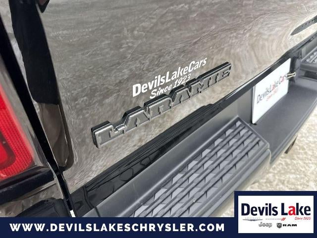 Advanced Safety Group: Adaptive Cruise Control with Stop and Go; Advanced Brake Assist; Auto High Beam Headlamp Control; Surround View Camera System; Parallel and Perp Park Assist with Stop; Full Speed Forward Collision Warning Plus; Lane Keep Assist. Black Appearance Package: Black Exterior Truck Badging; Leather Trimmed Bucket Seats; 22" X 9" Polished Painted Wheels; Black Interior Accents; Dual Exhaust with Black Tips; Black Headlamp Bezels; Power Heated Fold-Away Mirrors; Sport Performance Hood; Body Color Front Bumper; Body Color Door Handles; Body Color Rear Bumper with Step Pads; Grille B/color Outline 3 Texture 4. Laramie Level 2 Equipment Group: Blind Spot and Cross Path Detection; Rain Sensitive Windshield Wipers; ParkSense Front/rear Park Assist with Stop; Wireless Charging Pad; Uconnect 4C Navigation Radio with 8.4" Display; Rear 60/40 Folding Split Recline Seat; Remote Tailgate Release; Harman/kardon 19 Speaker Premium Sound; Rear Underseat Compartment Storage; Auto High Beam Headlamp Control; Heated Second Row Seats; Tailgate Ajar Warning Lamp; Foam Bottle Insert (door Trim Panel). Quick Order Package 27H Laramie. Bed Utility Group: Spray in Bedliner; Truck Bed Cargo Divider; 4 Adjustable Cargo Tie-Down Hooks; Pick-Up Box Lighting. Protection Group: Steering Gear Skid Plate; Tow Hooks; Transfer Case Skid Plate; Front Suspension Skid Plate; Fuel Tank Skid Plate. 4-Corner Air Suspension. Dual-Pane Panoramic Sunroof. 22" X 9" Polished Painted Wheels. Leather Trimmed Bucket Seats. RamBox Cargo Management System. Uconnect 4C Navigation Radio with 8.4" Display. Tri-Fold Tonneau Cover. Anti-Spin Differential Rear Axle. 33 Gallon Fuel Tank. Rear Wheelhouse Liners. Front and Rear Rubber Floor Mats. Rear Underseat Compartment Storage. 3.92 Rear Axle Ratio. **Equipment listed is based on original vehicle build and subject to change. Please confirm the accuracy of the included equipment by calling the dealer prior to purchase.**