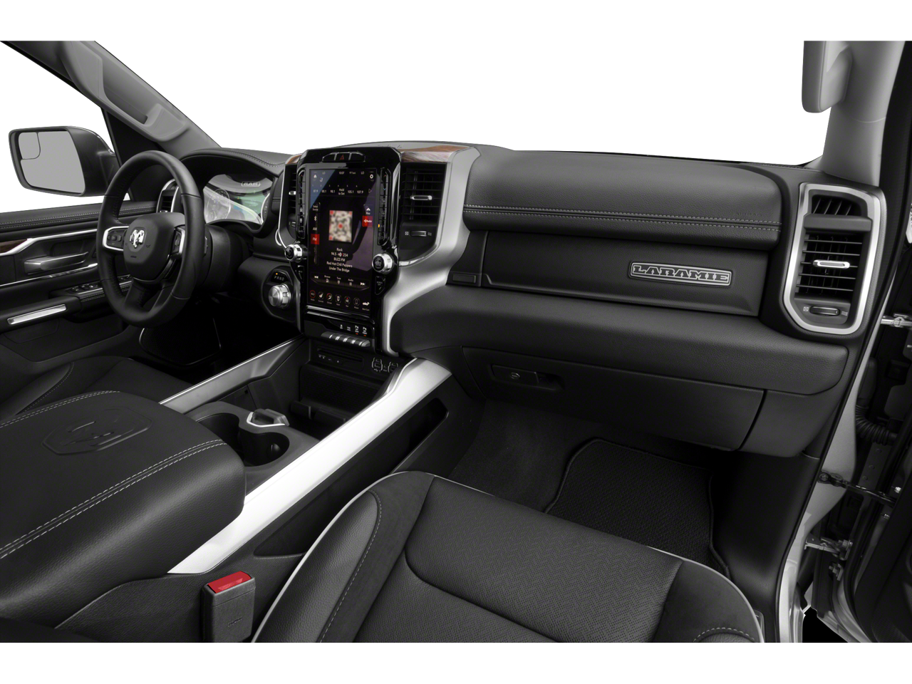 Laramie Level 1 Equipment Group. Quick Order Package 27H Laramie. Sport Appearance Package. Protection Group. Uconnect 12 Radio with Navigation. Leather Trimmed Bucket Seats. Anti-Spin Differential Rear Axle. ParkSense Front/rear Park Assist with Stop. Front and Rear Rubber Floor Mats. **Equipment listed is based on original vehicle build and subject to change. Please confirm the accuracy of the included equipment by calling the dealer prior to purchase.**