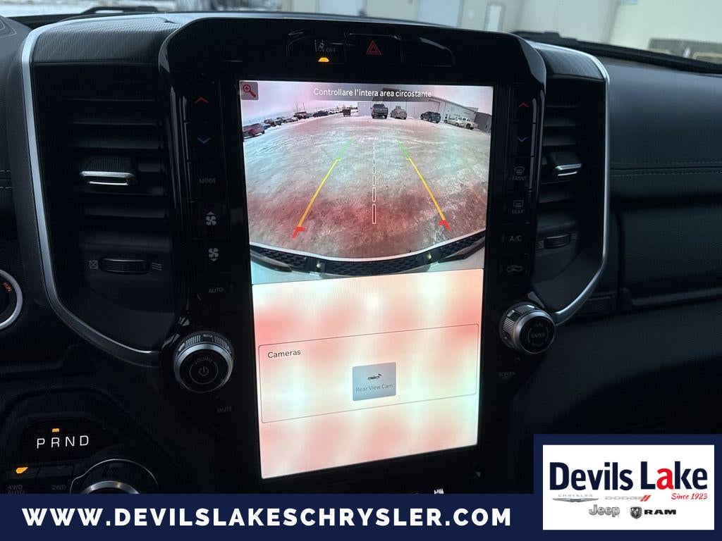 Big Horn Level 2 Equipment Group: Google Android Auto; USB Host Flip; Power Adjustable Pedals; Leather Wrapped Steering Wheel; Integrated Voice Command with Bluetooth®; 12" Touchscreen Display; Glove Box Lamp; Auto Power-Folding Mirrors; 115V Auxiliary Rear Power Outlet; Media Hub with 2 Charge Only USBs; Heated Front Seats; Security Alarm; Black Premium Power Mirrors; Apple CarPlay; Premium Overhead Console; 9 Amplified Speakers with Subwoofer; Wireless Charging Pad; Remote Tailgate Release; 115V Auxiliary Power Outlet; LED Dome Lamp with On/off Switch; Universal Garage Door Opener; 2nd Row in Floor Storage Bins; Sun Visors with Illuminated Vanity Mirrors; LED Footwell Lighting; Power 2-Way Driver Lumbar Adjust; Rear Window Defroster; Integrated Center Stack Radio; Rear View Auto Dim Mirror; Rear Power Sliding Window; Connectivity - US/Canada; GPS Navigation; 4G LTE Wi-Fi Hot Spot; GPS Antenna Input; Overhead LED Lamps; Exterior Mirrors with Heating Element; Auto Dim Exterior Driver Mirror; SiriusXM with 360L; Global Telematics Box Module; Connected Travel and Traffic Services; Heated Steering Wheel; Black Exterior Mirrors; Configurable Drive Mode; 400W Inverter; HD Radio; Uconnect 5 Navigation with 12.0" Display Radio; Exterior Mirrors with Supplemental Signals; Exterior Mirrors Courtesy Lamps; Air Conditioning ATC with Dual Zone Control; Cluster 7.0" TFT Color Display; Power Adjust 8-Way Driver Seat; Convex Wide-Angle Exterior Mirror Insert. Night Edition: 275/55R20 OWL All Season Tires; Deluxe Cloth Bucket Seats; Accent Color Premium Power Mirrors; Exterior Mirrors with Supplemental Signals; Black Headlamp Bezels; Exterior Mirrors Courtesy Lamps; Grille Black Surround Black Mesh; Auto Power-Folding Mirrors; Exterior Mirrors with Heating Element; 20" X 9.0" Aluminum Painted Clad Wheels; Auto Dim Exterior Driver Mirror; Black Exterior Truck Badging; Anti-Spin Differential Rear Axle; Accent Color Door Handles; Black Interior Accents; Dual Exhaust with Black Tips; Body Color Front Bumper; Convex Wide-Angle Exterior Mirror Insert; Body Color Rear Bumper with Step Pads; Black Tail Lamp Bezels; RAM Grille Badge - Black; Black Painted Exterior Mirrors Caps. Technology Group: Head Up Display; LED CHMSL Lamp; Digital Rearview Mirror. Quick Order Package 21Z Big Horn. Protection Group: Steering Gear Skid Plate; Tow Hooks; Transfer Case Skid Plate; Front Suspension Skid Plate; Fuel Tank Skid Plate. 9 Amplified Speakers with Subwoofer. Deluxe Cloth Bucket Seats. Anti-Spin Differential Rear Axle. 33 Gallon Fuel Tank. 3.92 Rear Axle Ratio. **Equipment listed is based on original vehicle build and subject to change. Please confirm the accuracy of the included equipment by calling the dealer prior to purchase.**